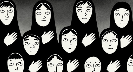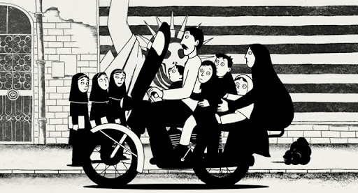 El proceso rápido de intolerancia hacia Occidente, y la progresiva e imparable fundamentalización religiosa se ve reflejada durante toda la película. Marjane vive un momento histórico conocido como la Revolución Iraní. Una revolución que transformó la monarquía autocrática del Sha en una República Islámica bajo el gobierno del ayatolá Khomeini, líder y fundador. Irán se convirtió en una “democracia” y fue reconducida hacia el camino de la libertad.